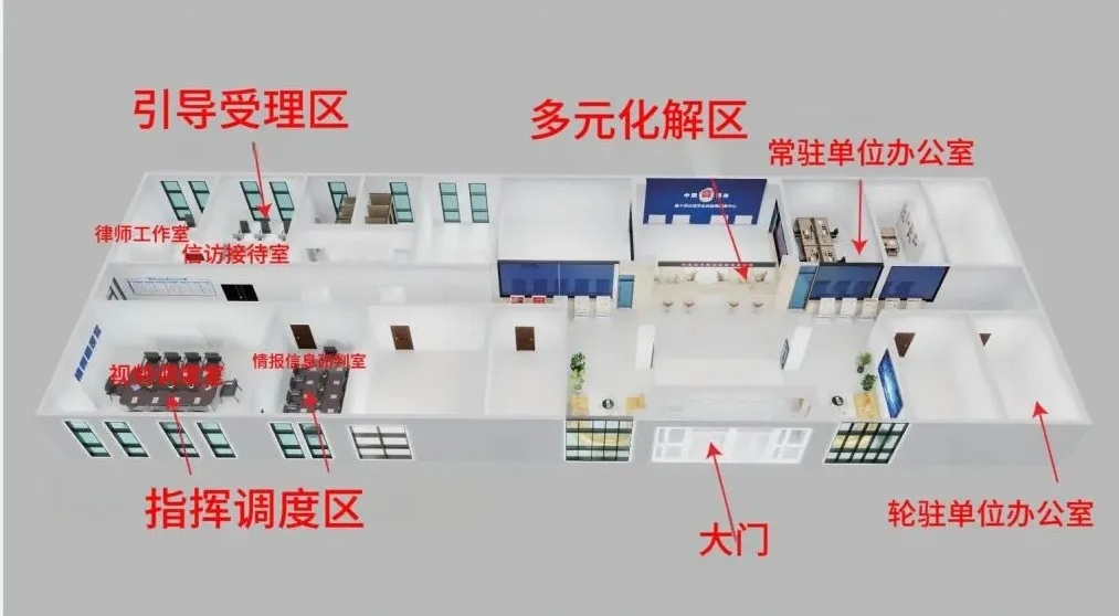 通过“常驻+轮驻+随驻”模式,第十师公安局、法院、检察院等12家单位联合办公,形成“单位进驻、力量聚合、矛盾联调”的一站式治理格局,确保职工群众“只进一扇门,巧解千千结”。